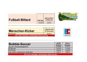 Für Kindergeburtstage bieten wir besondere Pakete an. Egal ob Minigolf, Soccergolf oder Bubble-Soccer. Ihr könnt auswählen. Dazu gibts eine kleine Portion Nuggets (5 Stück) und kleine Pommes sowie ein Getränk nach Wahl. Am Ende bekommt das Geburtstagskind noch einen Gutschein für den nächsten Besuch bei uns. Alle Angebote findet ihr hier.